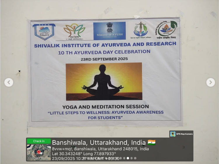 On 23rd September 2024, the Department of Swasthavritta and Yoga at Shivalik Institute of Ayurveda & Research (SIAR), Dehradun, celebrated the 10th Ayurveda Day with immense enthusiasm and dedication. Under the guidance of Dr. Simran (Principal), the event brought together students, faculty, and the local community to embrace the holistic health principles of Ayurveda, Yoga, and Sustainable Living.