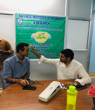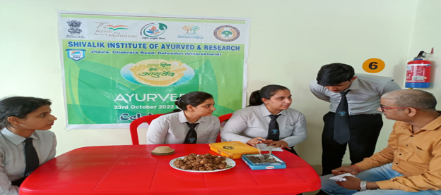 Shivalik institute of Ayurved and Research has shown it's enthusiasm in celebrating Ayurveda week. Following the theme 'Ayurveda for mental well being' the college organized a camp at Flair company, Selaqui , Dehradun on 12/10/2022. Where the workers mental health assessment was done. There was a special lecture of Dr Shadab Khan (Kaya chikitsa) on "Mental health" and Yoga and life style management by Dr Anjali Pant (Swasthvritta). Khajoor ladoo and Amla barfi which was prepared by our students were distributed to the workers.
