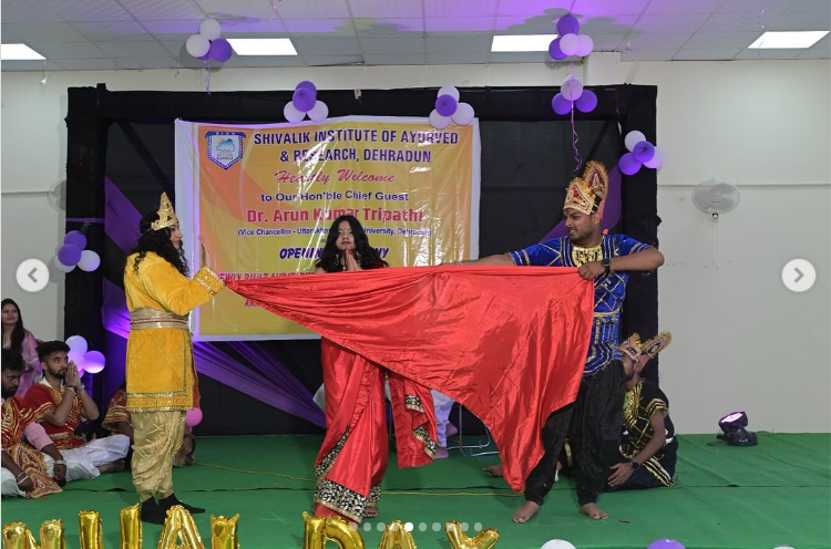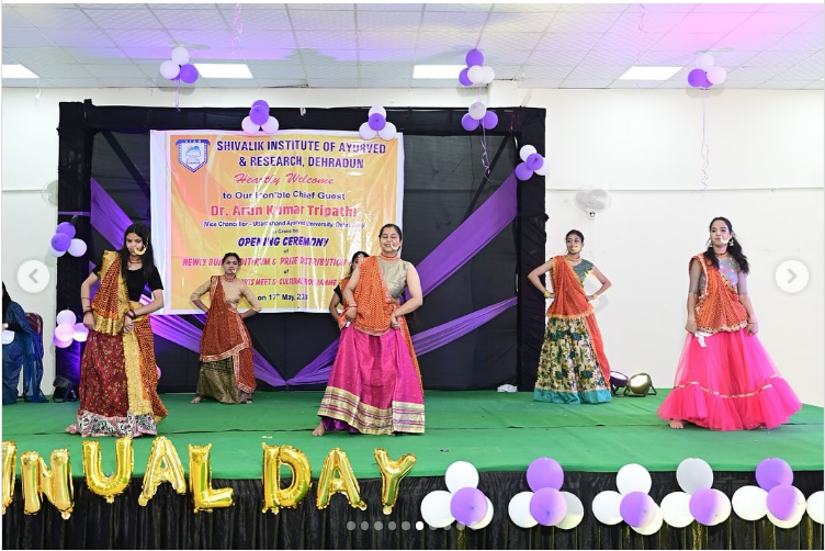 Shivalik Institute of Ayurved celebrated its first Annual meet on 17th of May 2024 with Inauguration of the Auditorium the new addition to the College infrastructure. The proceedings of this auspicious day commenced with the arrival of the esteemed Chief Guest Honourable Vice Chancellor sir, Dr Arun Kumar Tripathi, Uttarakhand Ayurved University, Harrawala, Dehradun. The program was started by paying tribute to Lord Dhanvantri and lighting of Diya by VC Sir, Dr Simran Kamra ma’am(Principal ), Dr Satendra Goyal sir(Director) and Dr Rajeev Sharma sir (Director). Welcoming speech was given by Dr Simran Kamra Ma’am & Dr Rajeev Sharma Sir . The enthralling performance by the talented students of Batches (2019 -2023) marked the opening of this Annual Day extravaganza wherein they showcased a captivating dance (Solo & Group), Solo Songs and Skit. It was an inter batch competition. Skits of batches 2020 & 2021 were talk of the Day. Batch 2020 Performed an act from Mahabharat. Batch 2021 performed an act on nine Goddess, both the act imparted a valuable message. The program was hosted by Bhawna Pandey and Nishika Joshi of Batch 2018(Interns). The Program came to end by by Distribution of Medals and Certificates to the winners of the Sport and Cultural event and appreciation to the co-ordinators. And by the speech of Honourable VC Sir . He motivated students and shared prospects of Ayurved Globally. Dr Satendra Goyal sir concluded the event by ‘Vote of Thanks’