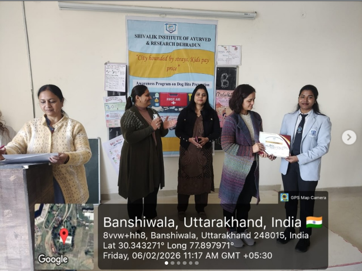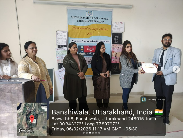 An awareness program was successfully organized by Shivalik Institute of Ayurveda in reference to the NCISM letter titled “City Hounded by Strays, Kids Pay Price.” The objective of the program was to educate students and participants about safe and responsible behavior around animals, particularly stray animals, and to highlight the importance of preventing animal-related injuries.
