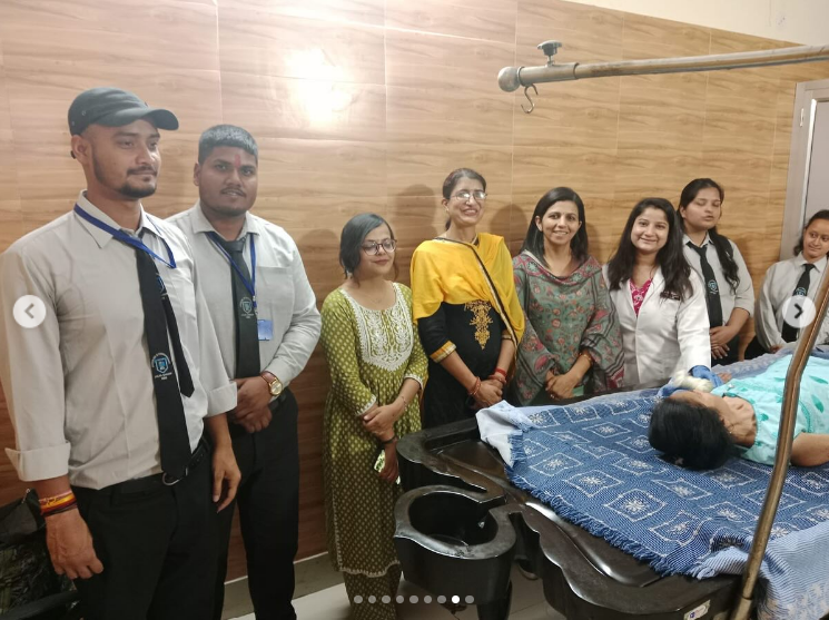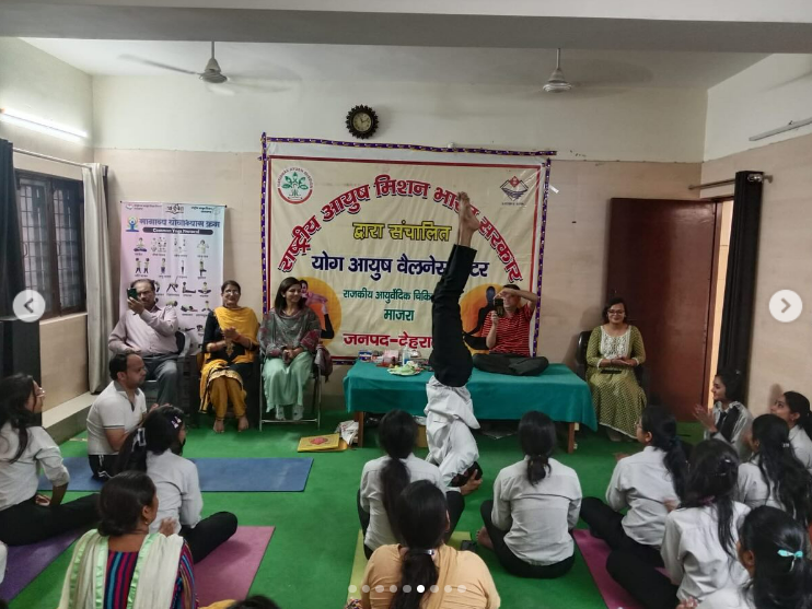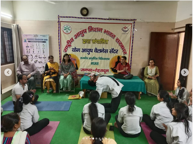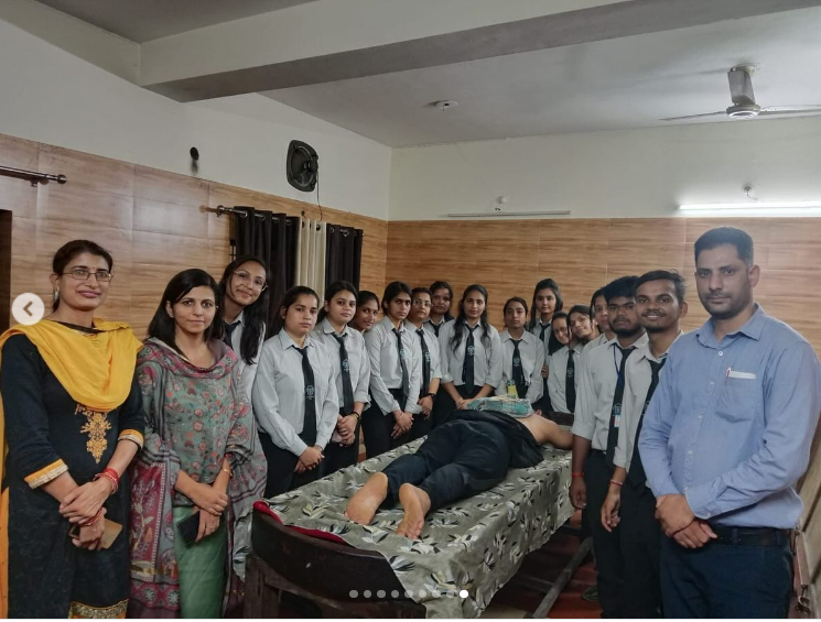 The students were acquainted with different diseased conditions like cervical spondylosis, slip disc neuralgia, knee pain and other chronic conditions. The hospital had well developed Panchkarma therapy rooms, in which various Panchkarma procedures like Greeva Basti, Kati Basti, Patra Pottali Pinda Sweda, Janu Basti, Shashti Shaali Pinda Sweda were being employed on different patients. Students were taught the basic principles behind the therapy along with the mode of administration. Along with Panchkarma the hospital had a separate portion of Yoga in which different sitting and standing Asanas like Padmasana, Chakrasana Shirshasana, Trikonasana etc were demonstrated to students along with their participation. The disease specificity of the different Asanas and their importance in lifestyle disorders was also depicted by the experts. Lastly, there was attached Anganwadi to the hospital where students learnt about different nutritional supplementations and vaccination schedule. The visit cleared the perception of students regarding different Panchkarma treatment modalities and treatment option for various lifestyle disorders.