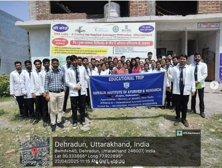 The Department of Rog Nidan Evum Vikriti Vigyan at Shivalik Institute of Ayurved and Research organized an educational tour to the DNA Lab – CRIS (Centre for Research and Innovative Studies) for the 2022 Batch on 22nd April 2025. The tour was coordinated by Dr. Akanksha Chauhan (Assistant Professor, Department of Rog Nidan), Dr. Deepika Gusain (Assistant Professor, Department of Rog Nidan)