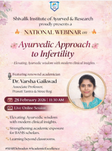 *Shivalik Institute of Ayurved & Research, Dehradun* *Department of Prasuti Tantra & Stree Rog* 🌸 *NATIONAL WEBINAR* 🌸 On *Ayurvedic Approach to Infertility* 🎙 *Guest