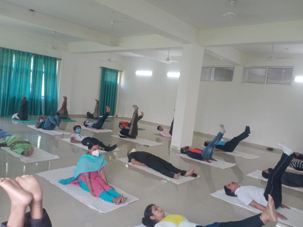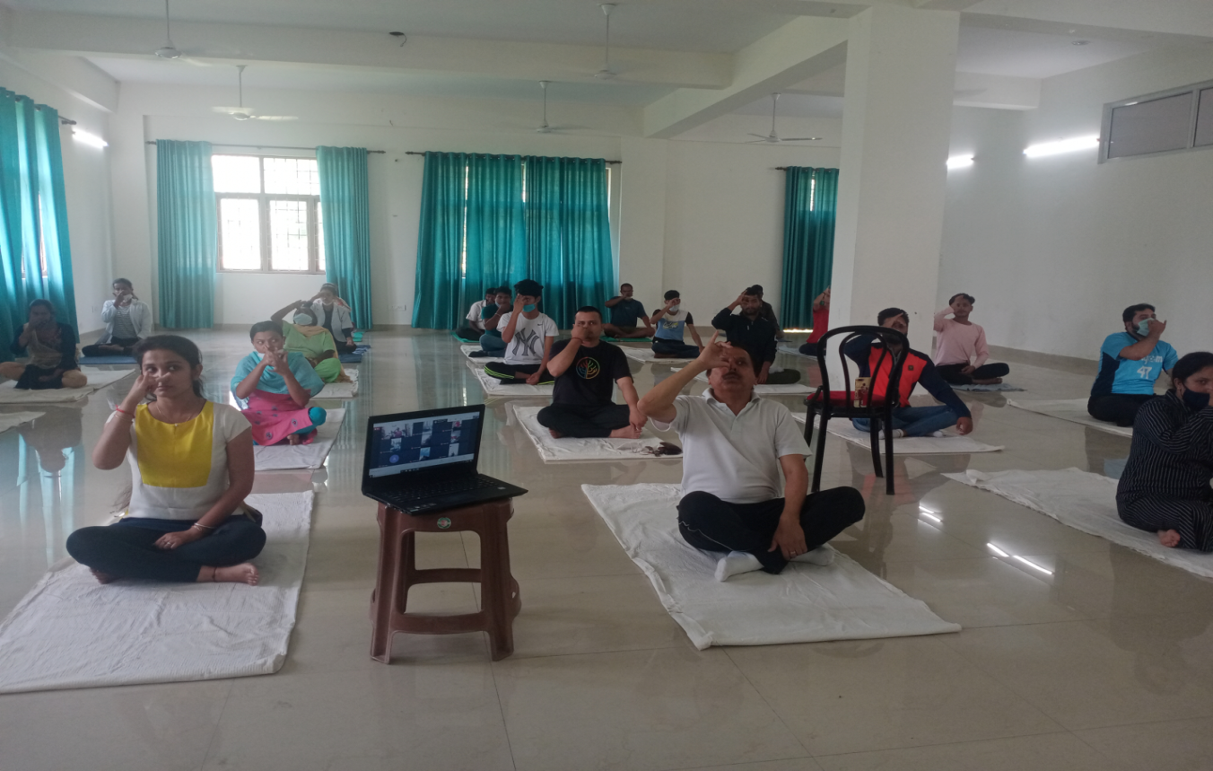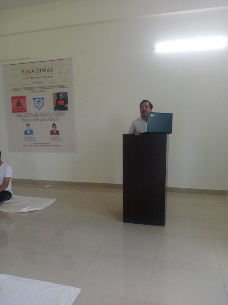 On June 21st 2021, yoga day was celebrated at Shivalik Institute of Ayurveda and research. The event was organised at college campus (seminar hall) under the supervision of Yoga instructor Mr. Deepak. Almost 30 people from hospital staff have attended the session at campus and almost 100 people from college and hospital staff have participated online via Google meet application due to Covid 19 pandemic .