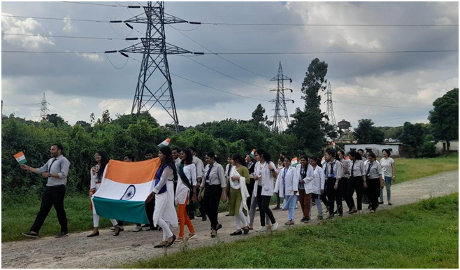 Dehradun, Students and College staff participated in Tiranga Rally and raised patriotic slogans with fervour and zeal from the college to nearby areas.